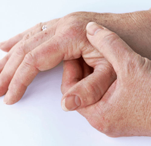 Rheumatoid arthritis (RA) is a chronic (ongoing) autoimmune disease that causes pain, swelling and stiffness in the lining of your joints (synovium). It most commonly affects the joints in your fingers, hands, wrists, knees, ankles, feet and toes. RA usually occurs in the same joints on both sides of your body, which makes it different from some other types of arthritis.